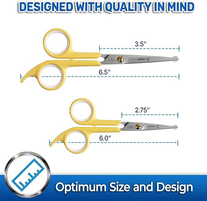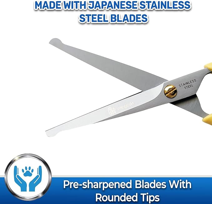 - Rounded tips for safety. No need to worry about poking your pet's skin with these round-tipped scissors. Safer to use around the face and ears
