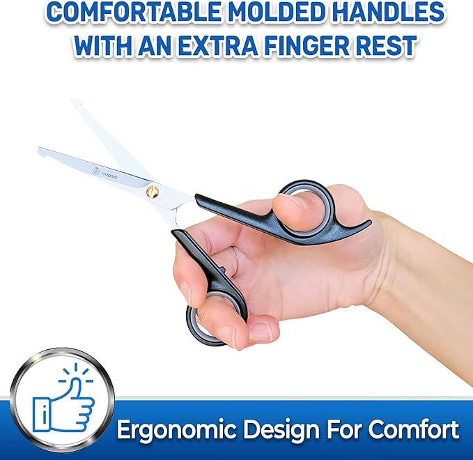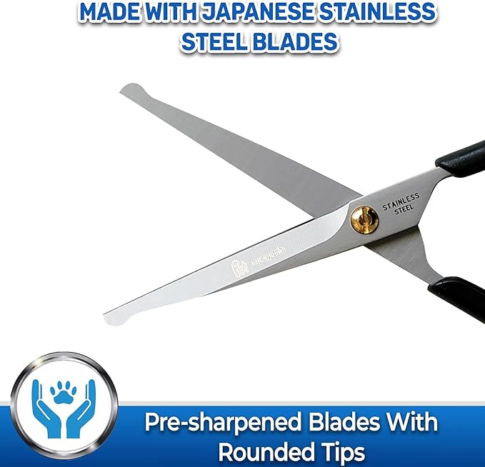 - Rounded tips for safety. No need to worry about poking your pet's skin with these round-tipped scissors. Safer to use around the face and ears