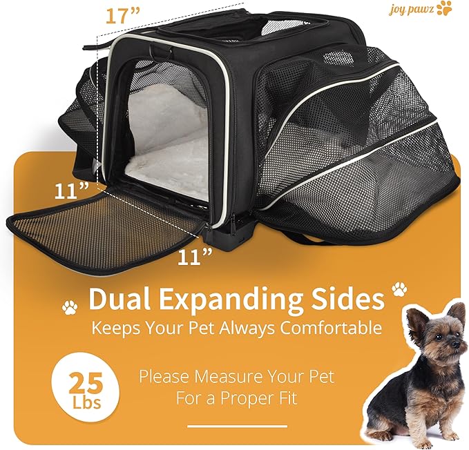 - Smart Storage Solutions - Multiple pockets and strong, pet-proof zippers ensure you can carry all the essentials while keeping your pet secure. Plus, expandable sides in our pet carriers for small dogs and cats provide even more room for your pet to stretch out.