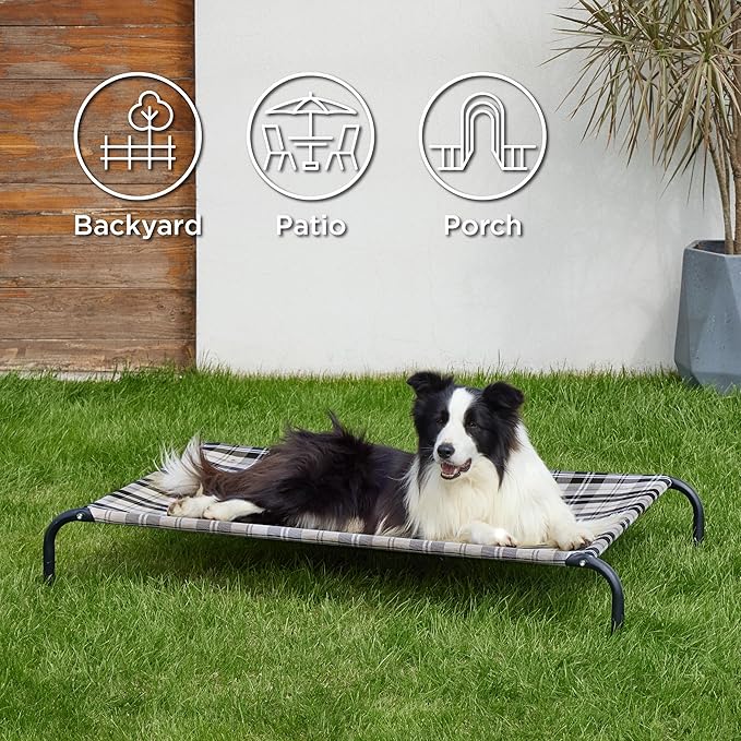 - Indoor & Outdoor Use: Weather resistant, the 8" raised breathable mesh cot works great indoors and outside. Keep your pup dry and comfortable in the backyard, on the patio or porch, next to the pool, or while camping.