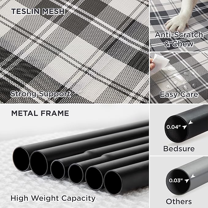 - Strong & Durable: Heavy-duty Teslin mesh holds up against scratching and chewing, providing excellent support and even pressure distribution to reduce joint and muscle pain. The strength-tested lightweight metal frame supports dogs up to 75 lbs.