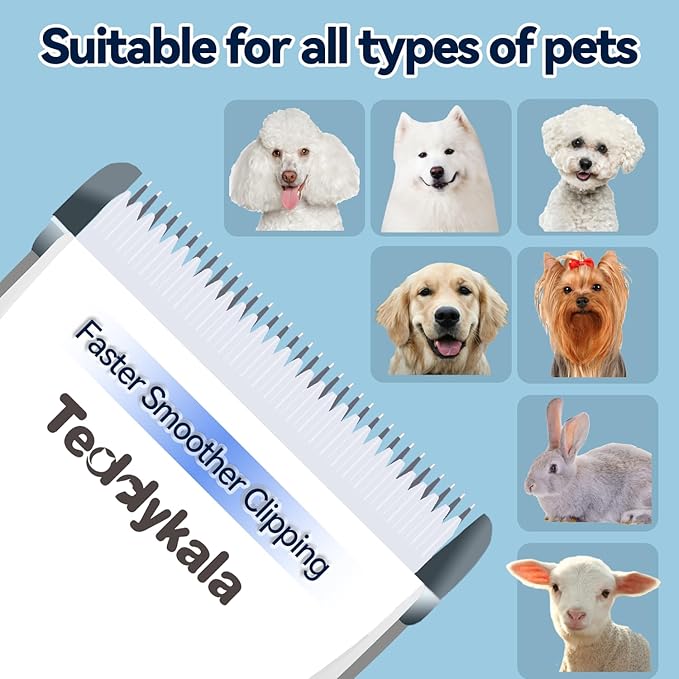- 【33 tooth dense tooth Detachable blade for safety and sharpness】 Removeable cutting head is easy to clean, and the upgraded R-shaped rounded ceramic blade is sharp enough not to rust or burn easily. It is also very suitable for trimming small areas such as claws, ears, and eyes. No hair stuck, no scalding,33 tooth dense tooth detachable blade,Adopting professional wool shearing standards.