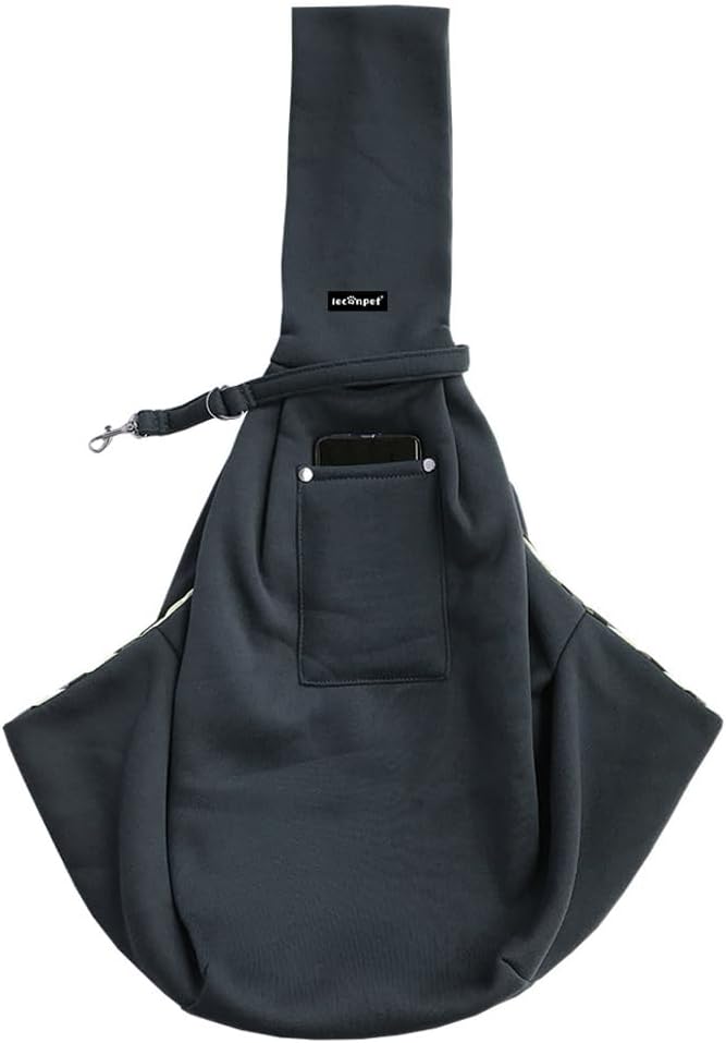 Leconpet Dog Sling Carrier Shoulder Bag for Pets with Mobile Phone Pocket Safety Buckle Security Lock, Suitable for Puppy, Small Dogs, and Cats for Outdoor Travel (Dark Grey)