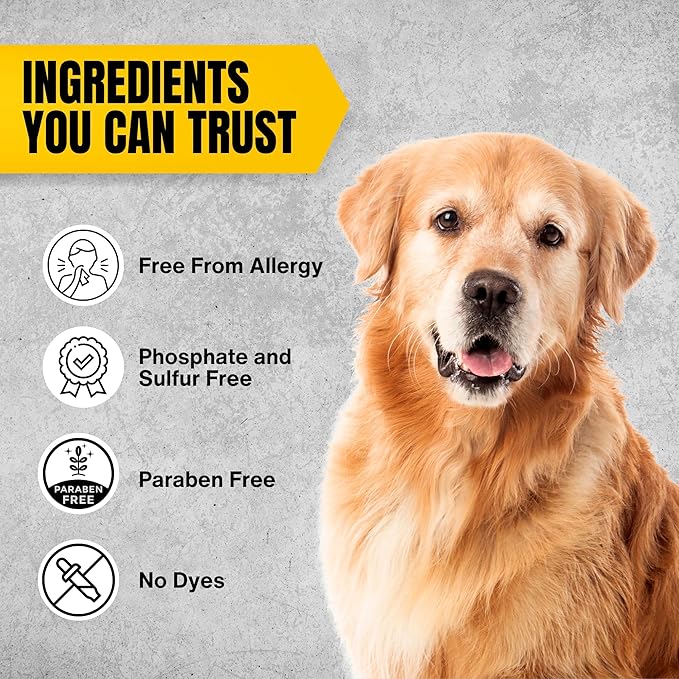 - NATURAL CARE DOG SHAMPOO: Made with natural ingredients, including soothing oatmeal, this no rinse shampoo is gentle on your pet's skin and coat. It cleanses and deodorizes without causing irritation, making it suitable for dogs with sensitive skin.