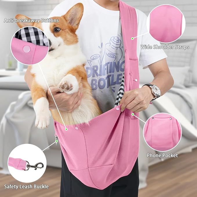 - Easy to Use: Designed with buttons for added convenience, our dog sling bag is easy to put on and take off. Thickened shoulder straps reduce the pressure on your shoulders and reduce the burden of carrying more puppies. Your pet will love being snuggled up close to you!