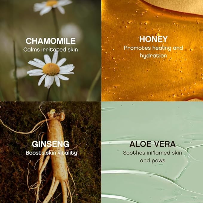 - Natural moisture & freshness: Our wipes are infused with nature's finest ingredients, including soothing aloe, calming lavender oil, healing chamomile, and revitalizing ginseng. These ingredients work together to provide deep moisture and relief from irritated or dry skin, leaving your dog’s coat soft and nourished. The wipes also impart a light, fresh scent without the use of artificial fragrances or harsh chemicals, ensuring a natural and refreshing clean every time.