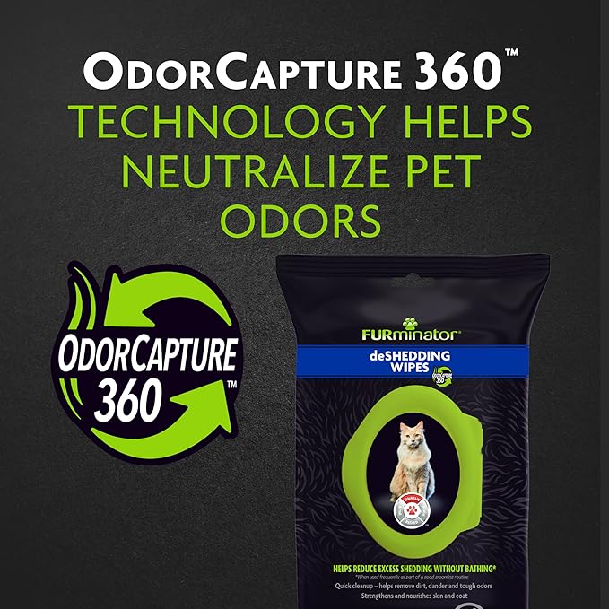 Furminator DeShedding Grooming Wipes for Cats Refresh and Deodorize Coat Without Bathing, 50 Count