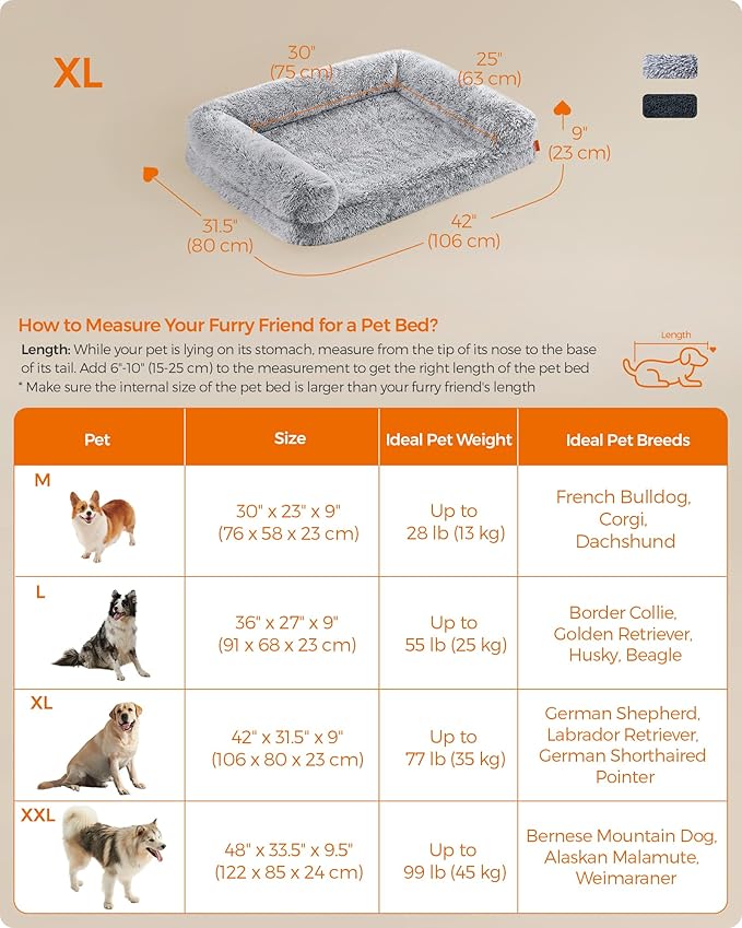 - [Choose the Right Size] This dog bed measures 42" x 31.5" x 9" and is ideal for medium and large dogs up to 77 lb, such as Huskies, Beagles, and Border Collies