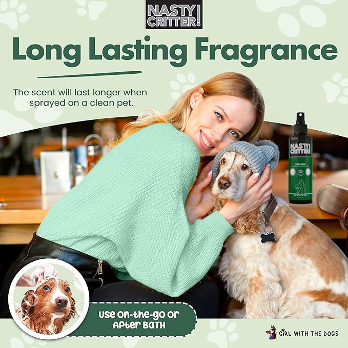 - LONG-LASTING FRAGRANCE INFUSION. Our dog perfume spray long lasting formula binds to hair follicles for a longer-lasting scent than other brands. Immerse your pet in the unparalleled aroma of NASTY CRITTER! dog cologne and pet cologne spray for dogs.