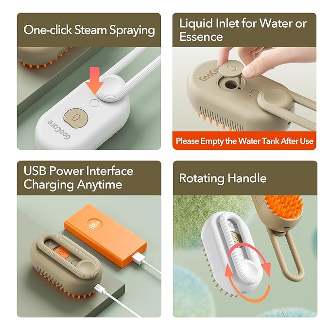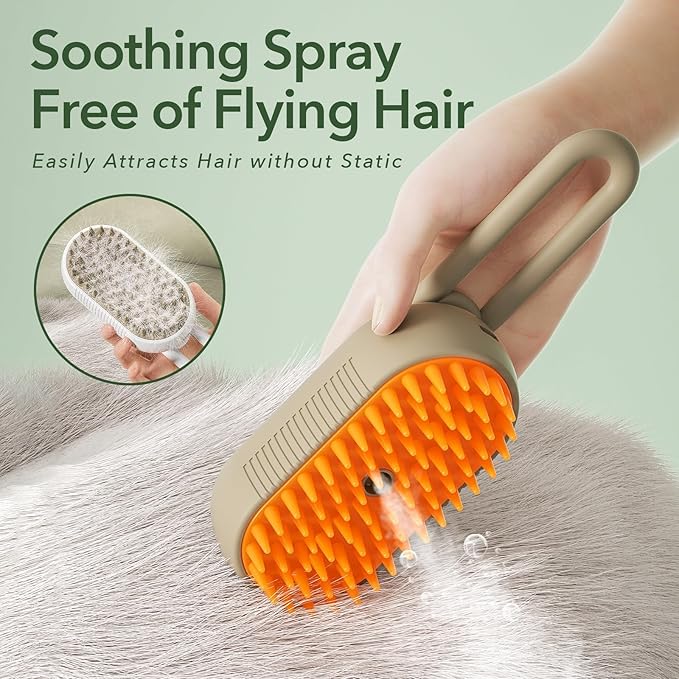 - 【3-IN-1 MULTIFUNCTIONAL TOOL】This pet steam brush combines detangling, hair remover, and a relaxing massage in one tool. Use the cat shedding brush to remove loose fur while reducing static and flying hairs. Thanks to its built-in small water tank for adding essential oils, making it a versatile addition to your pet care routine. The cat and dog brush with spray is perfect for indoor deshedding furry pets.
