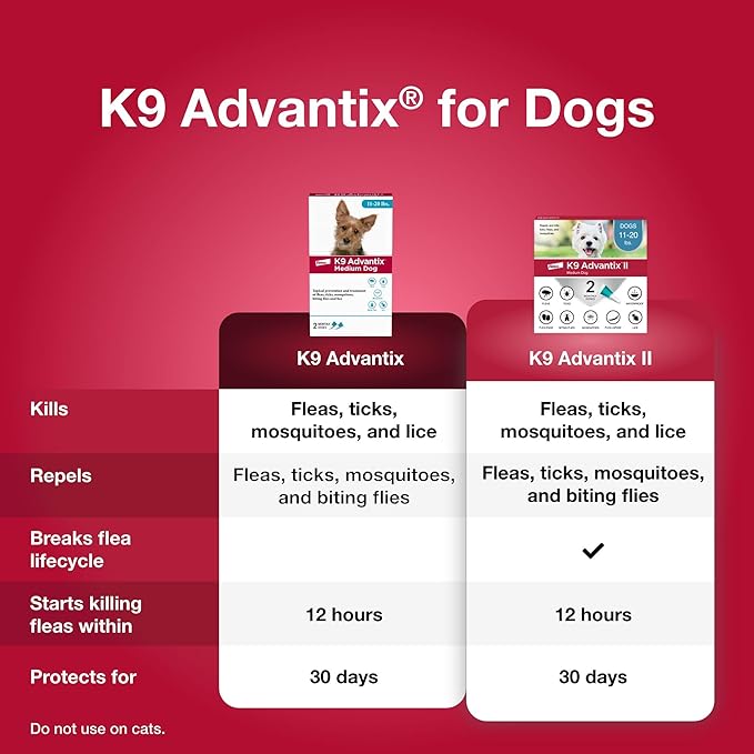 - K9 Advantix Medium Dog 30-day treatment & prevention protects dogs 11-20 lbs. from fleas, ticks, mosquitoes, biting flies and lice