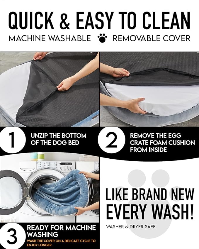 - Convenient Removable Cover: Our beds come with a removable zippered cover, making it effortless to remove and machine wash. The cover is constructed from durable and scratch-resistant fabric, ensuring longevity even with active or mischievous dogs. Wash the cover on a delicate cycle to enjoy longer!