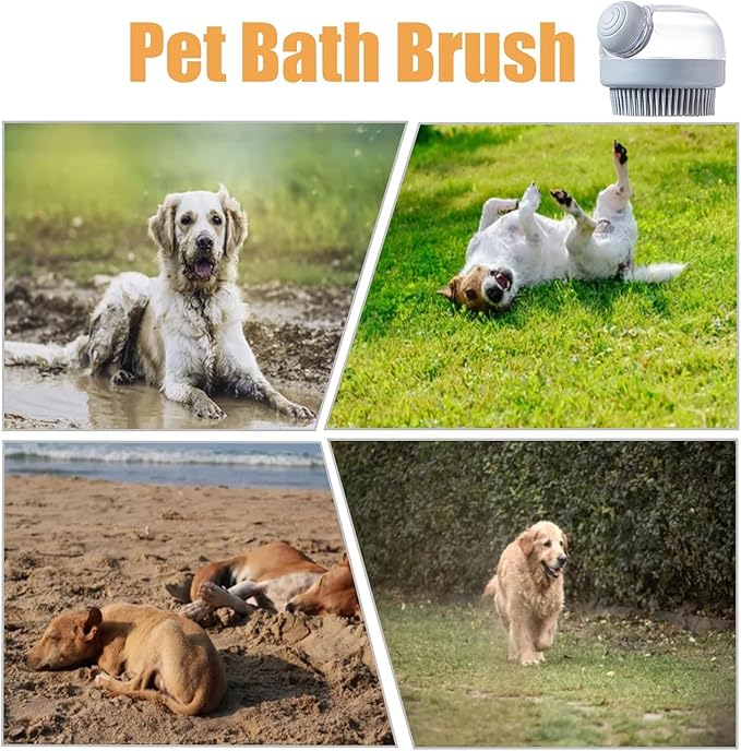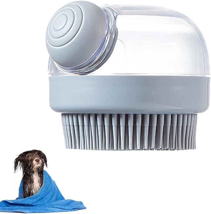 - Dog Bath Brush Pet Shampoo Brush Silicone Puppy Brush Dog Shower Brush with Soap Dispenser Grooming Shower Brush (Grey)