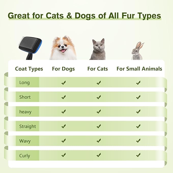 - SUITABLE FOR ALL COAT TYPES : The dog brush for shedding is suitable for use on dogs, cats, and small animals with all coat types, including long, short, curly, wiry, and even heavy coats.