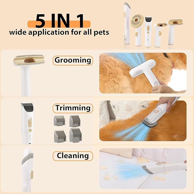 Pet Grooming Vacuum,Pet Grooming Kit & Vacuum Suction 99% Pet Hair,Dog Vacuum for Shedding Grooming,Pet Grooming Vacuum for Dogs&Cats,5 in-1 Pet Grooming Kit,Dog Hair Remover