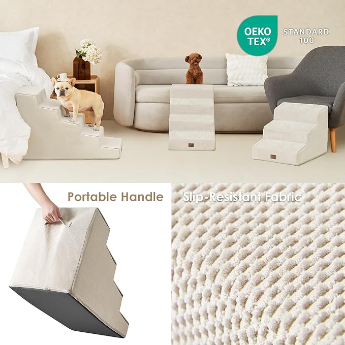 EHEYCIGA Dog Stairs for Small Dog 19.7”H, 4-Step Slope Dog Stairs for High Beds and Couch, Pet Steps with Non-Slip Bottom, Low Ramp and Larger Step Area