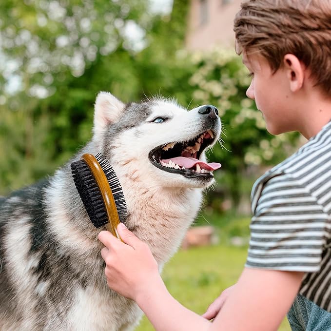 TAKAVU Dog Cat Detangling Brush, Two-Sided Pin & Boar Bristle Grooming Brush for Removing Loose Hair Dirt and Promoting Healthy Coat, De-shedding Pet Supplies Comb, Detangler Brush for Dogs, Cats