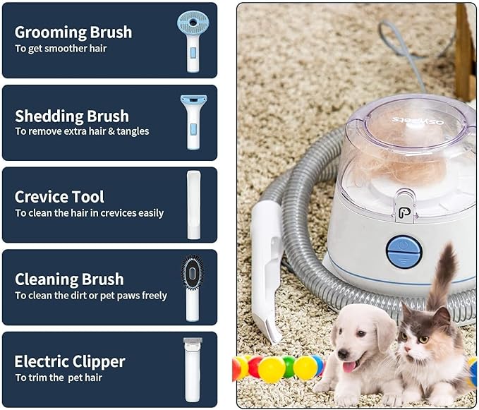 Pet Grooming Vacuum,Pet Grooming Kit & Vacuum Suction 99% Pet Hair,Dog Vacuum for Shedding Grooming,Pet Grooming Vacuum for Dogs&Cats,5 in-1 Pet Grooming Kit,Dog Hair Remover