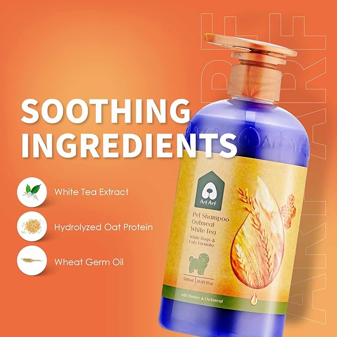- Natural Ingredients for Gentle Cleansing – Formulated with plant-based ingredients like White Tea Extract, Triticum Vulgare (Wheat) Germ Oil, oatmeal, and honey, providing a soothing wash while relieving itchiness for your dog. It is free of parabens, and other harmful chemicals, making it gentle and non-irritating, perfect for puppies and dogs with sensitive skin. Give your pet the most natural care with confidence.
