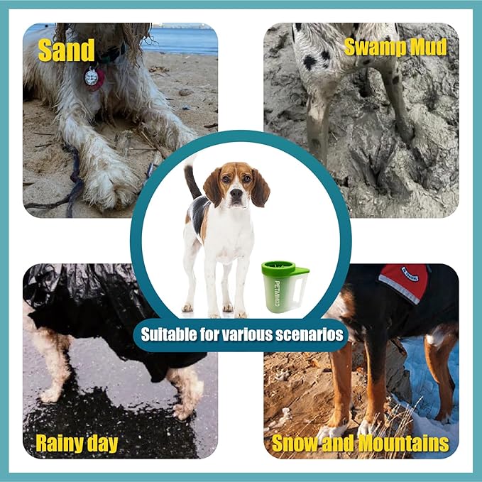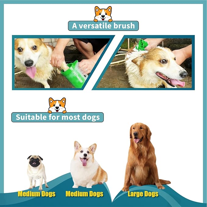 Paw Cleaner with Handle for Dogs (with 2 Absorbent Towels & 2 Adjustable Bath Brushes for Short and Long Hair), Muddy Foot Washer, Green, Medium