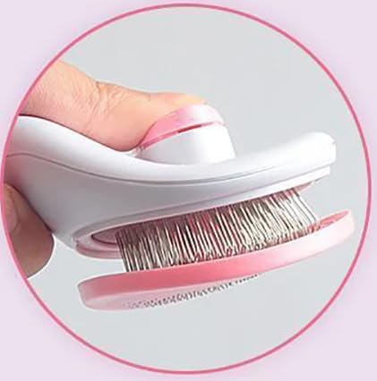 Pet Hair Removal Grooming Cleaning Pet Comb Pet Dog Pet Cat Hair Brush Dog Hair Cleaner Comb Needle Tool Release Button Self Cleaning Easy Use (GREY) (Pink and White)