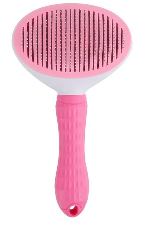 - Comfortable and Nonslip Handle. Our cat shedding brush is designed with a comfort-grip and nonslip handle, and this self cleaning cat brush also has a massaging effect for your hand and you won't get tired easily when you brush your pet.