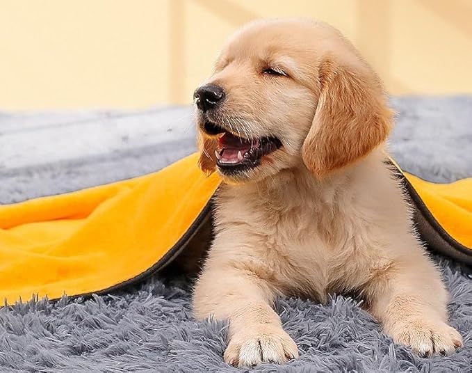 Pet Bath Brush and Towel for Dogs and Cats - Soft and Durable Bristles for Gentle Grooming (blue)