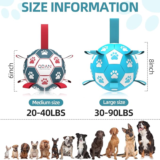 - âš½Durable Dog Ball Toy: Complying with the exact same standard as children's toys, the dog ball is made of premium PU that is the material of standard soccer ball so that it can be kicked and bounced as well. Note, our dog soccer large balls is suitable for 30-90lbs dogs, MEDIUM SMALL DOG PET needs to choose our medium small one.