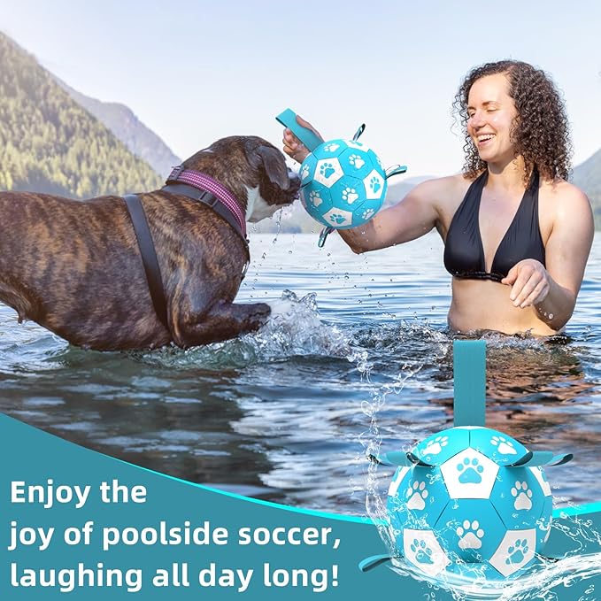 - âš½Unique Dog Water Toys: Our dog pool toys are the perfect choice for active play in pool/beach, ensuring long-lasting entertainment for your furry friend with nylon tabs sewn evenly into the seams not only create an erratic bounce that dogs love to chase, but also make it easier for the dogs to fetch, toss, tug and retrieve.