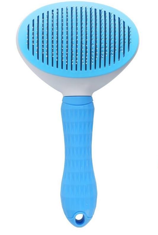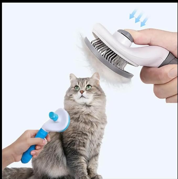 - Comfortable and Nonslip Handle. Our cat shedding brush is designed with a comfort-grip and nonslip handle, and this self cleaning cat brush also has a massaging effect for your hand and you won't get tired easily when you brush your pet.