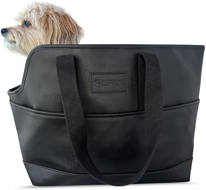 Luxury Dog Purse Carrier for Small Dogs, Faux Leather Pet Carrier Purse, Secure Harness Clip, Dog Tote Bag Carrier for Small Dogs and Puppies - Black