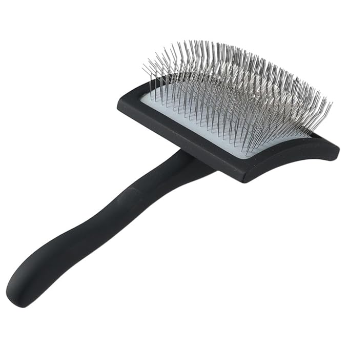 Slicker Brush, Long Pin Brush, Pet Comb, Dematting Tool with Stainless Steel Pins, Large(Black or Purple)(Black)