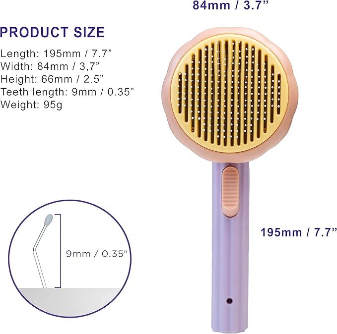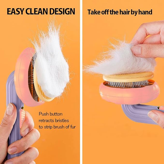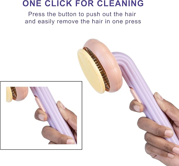 - ONE-CLICK CLEANING BUTTON - cat/dog brush with One-Click Cleaning Button saves time and energy when grooming and cleaning. Simply click the button to auto release the collected shed hair. The brushed hair can be easily pushed out from the bristles. Perfect for cat and dog, rabbits.