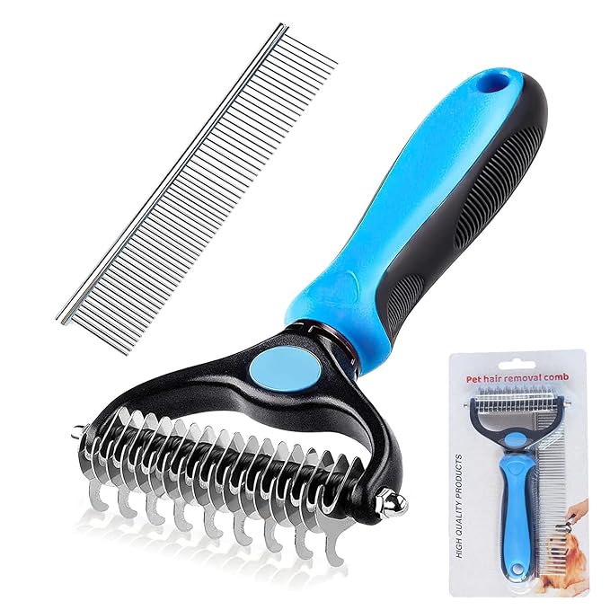 Dog Grooming Brush for Shedding Double Sided Shedding and Dematting Undercoat Rake Comb for Dogs and Cats Pet Dematting Tool for Small Medium Dogs and Cats 2 Pack