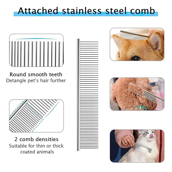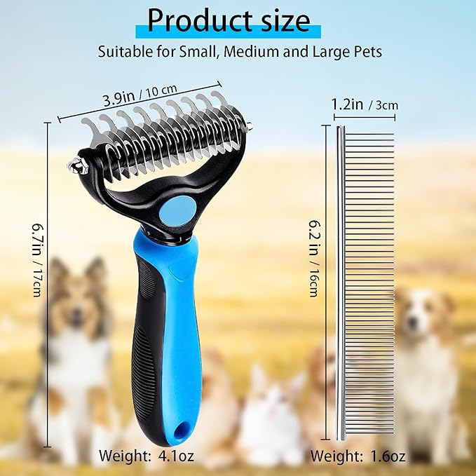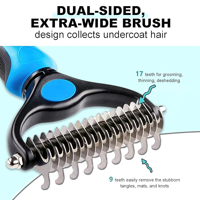 - 【EFFICIENT DESHEDDING】- Our Dog Grooming Brush is designed to effectively tackle shedding with its double-sided deshedding rake and dematting comb. This professional dog brush for shedding effectively reduces dead hair up to 95% to maintain a clean and healthy coat.