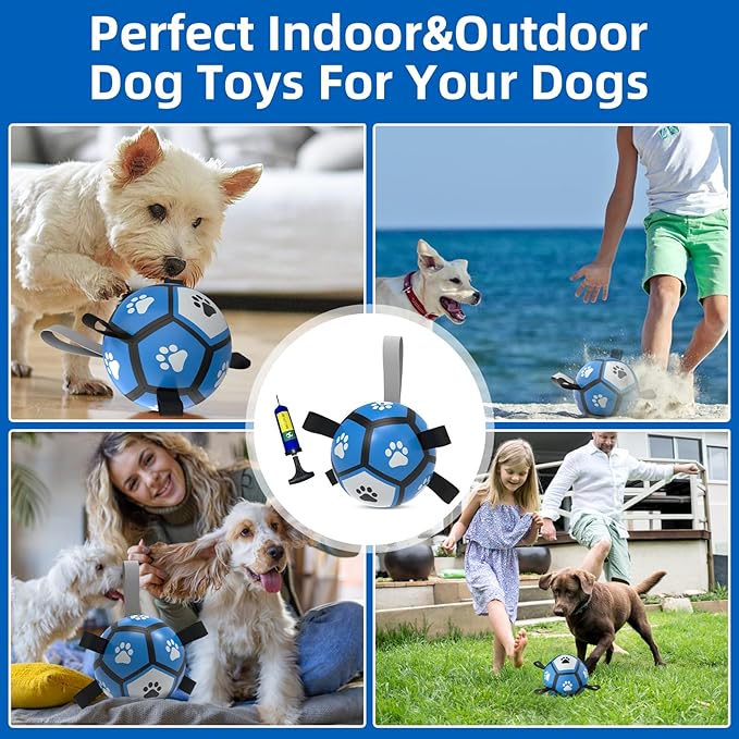 - âš½Pump & Needle Adapter Included: The herding balls for dogs come deflated. There's a needle point adapter and a pump inside as well while other items in the same market only include a ball needle. The soccer ball dog toy is 5 inches in diameter, perfect for small breeds, not for aggressive chewers.
