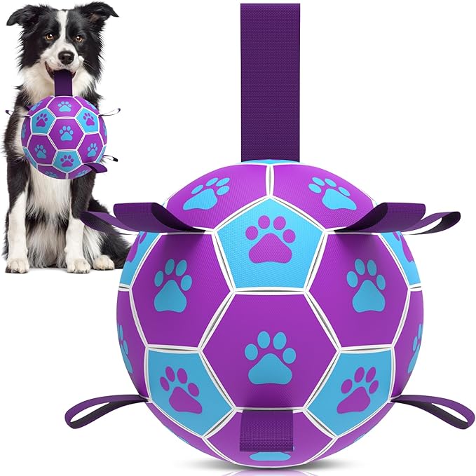 - âš½Pump & Needle Adapter Included: The herding balls for dogs comes deflated. There's a needle point adapter and a pump inside as well while other items in the same market only include a ball needle. The soccer ball dog toy is 8 inches in diameter, perfect for large breeds, not for aggressive chewers.