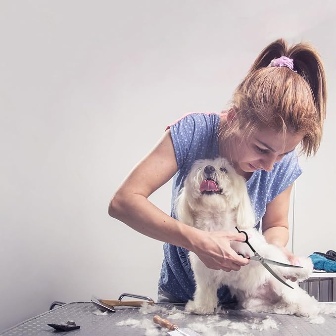 - CONVENIENCE - Lightweight and blunt Tips blades make it Safe and Easy for anybody to handle the dog scissors for grooming curved and cut hair. Equipped with a raised adjustable screw, you can tune the pet scissors tightness directly with your fingers.