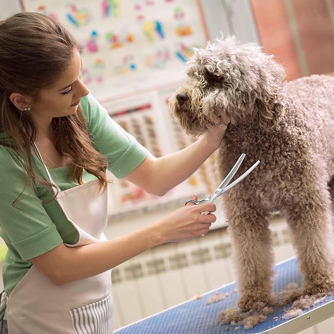 7" Upward Curved Dog Chunker Thinning Scissors Silver Dog Grooming Scissors Professional Blending Texturizing Trimming Shears for Dog Cat Pet Japanese Stainless