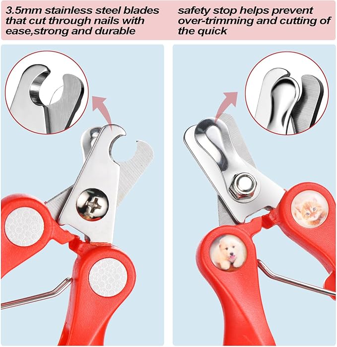 - 【Easy to Use】: No more accidental injuries, this dog clippers nail makes it easy for your pet to enjoy a safe and stress-free grooming experience. Keep your furry friend's paws clean and healthy with the sharp safety nail clippers for dogs. Nail files can be used to remove sharp nails after cutting your dog and cat nails.