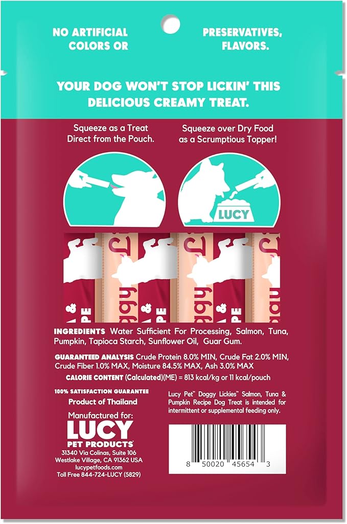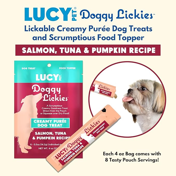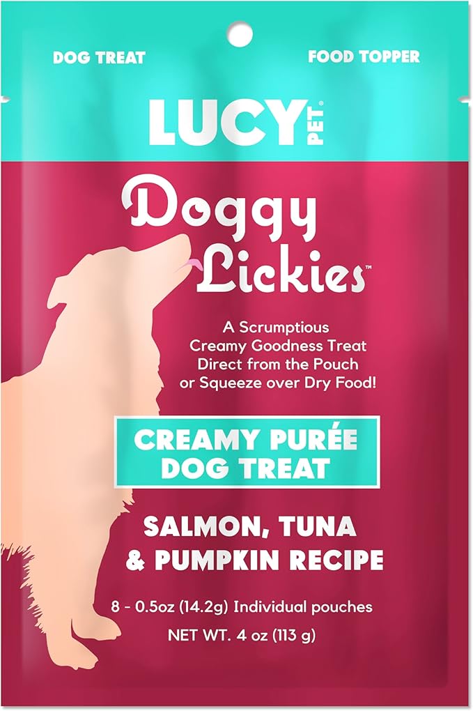 - Lucy Pet Doggy Lickies are a scrumptious lickable treat you can serve directly from the pouch or over Lucy Pet dry dog food
