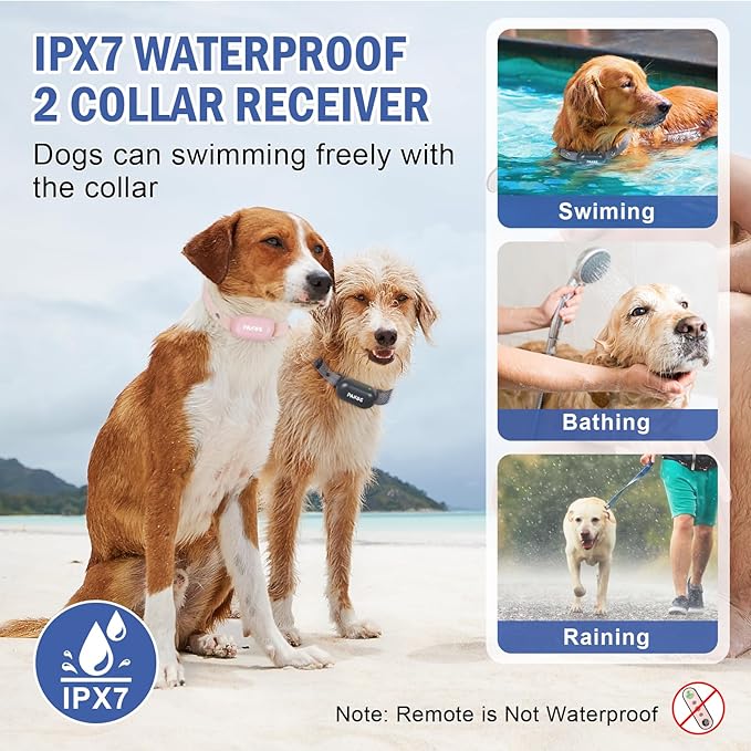 - 【IPX7 Waterproof Collar】The dog training collar receiver is IPX7 waterproof, allowing your dog to play freely in the rain or run around the pool without hindrance. Have fun training time that strengthens the bond between you and your pet.