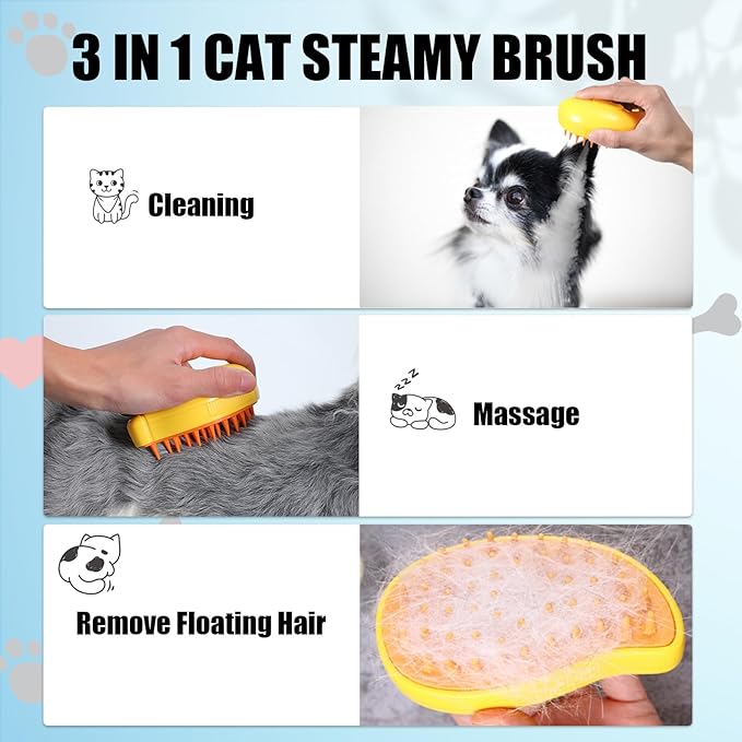 - 😺 [3 IN 1 STREAM CAT BRUSH]: Cleaning, massaging and remove the floating hair. The steam brush for dogs helps to gently remove tangled and loose hair while providing a soothing massage for your furry pet, leaving them feeling relaxed and rejuvenated after each grooming session.