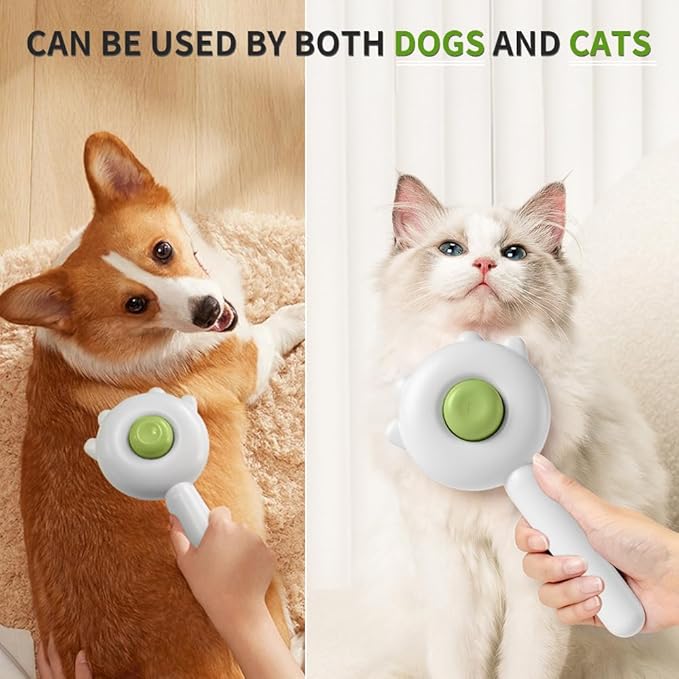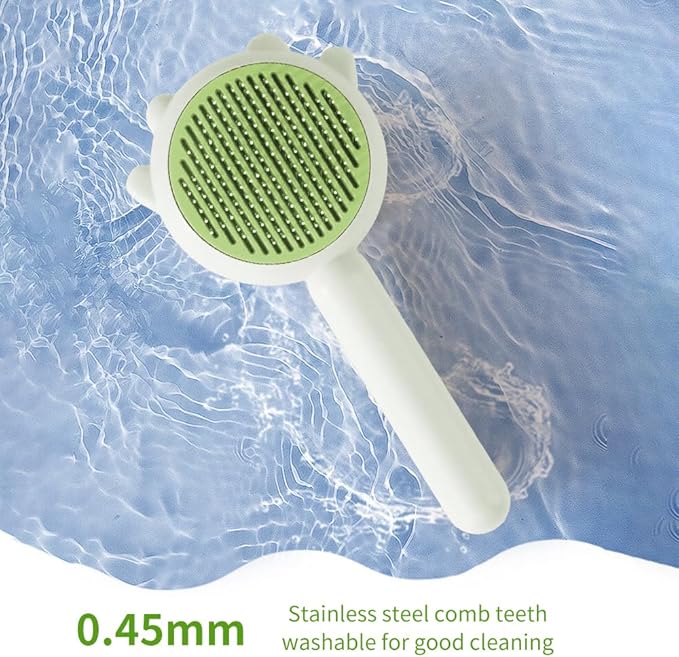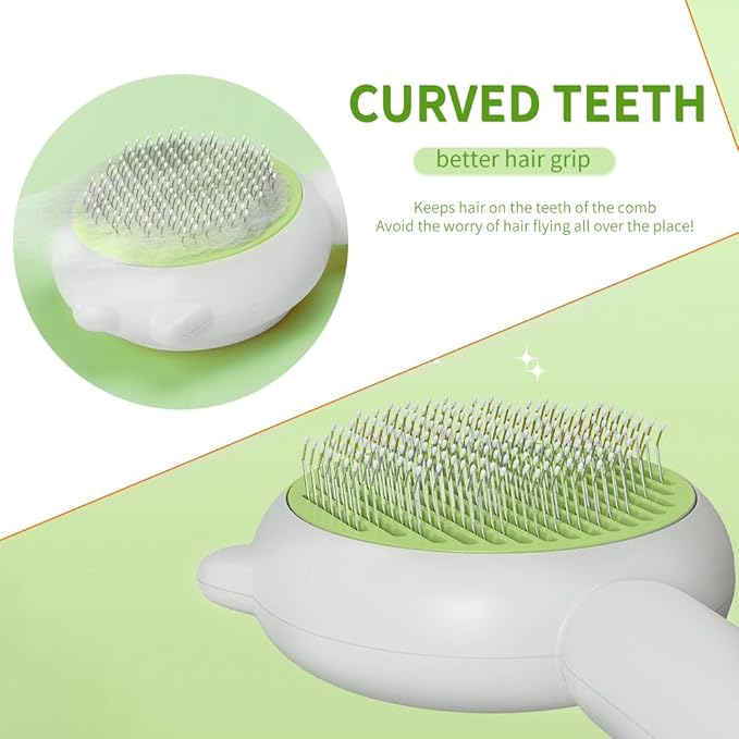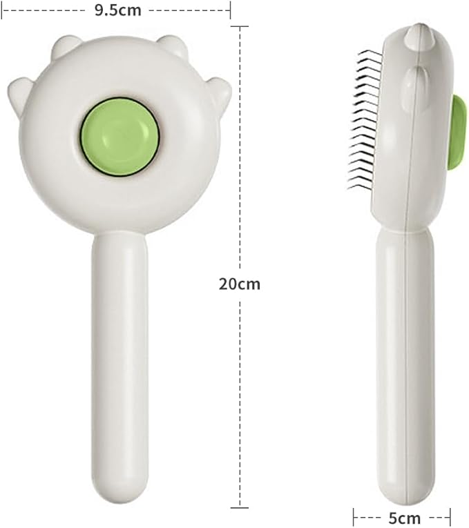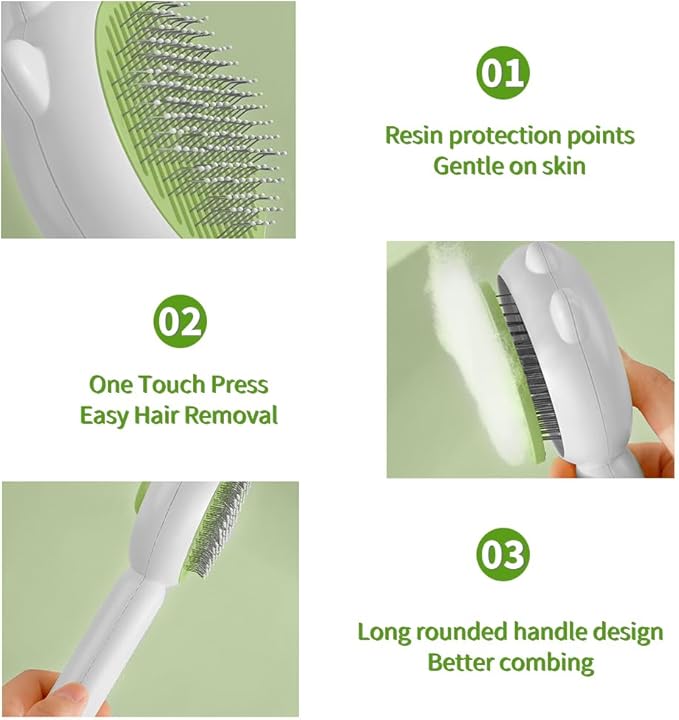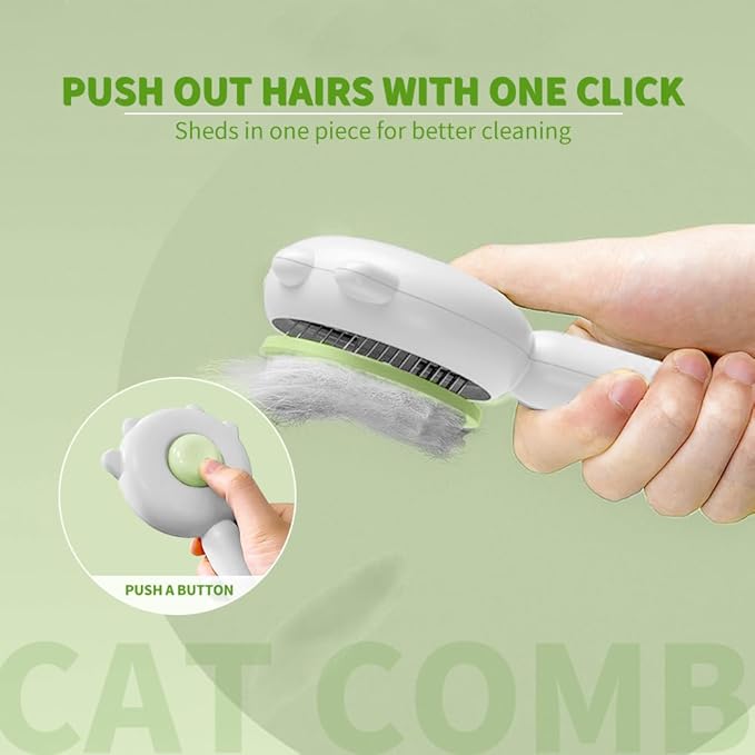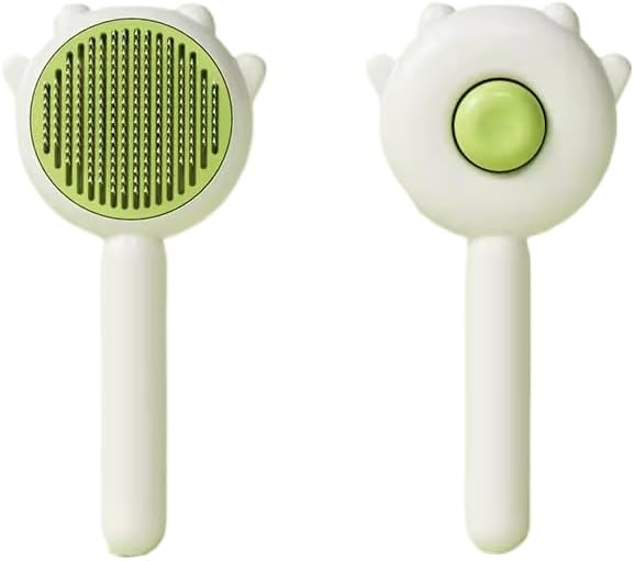 Indoor Universal Brush for Cats and Dogs, Self-Cleaning Pet Hair Brush with Release Button for Grooming Kittens and Puppies (green)