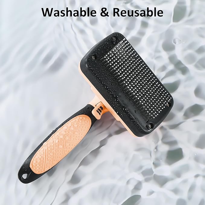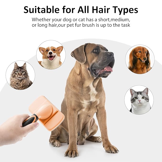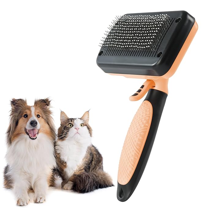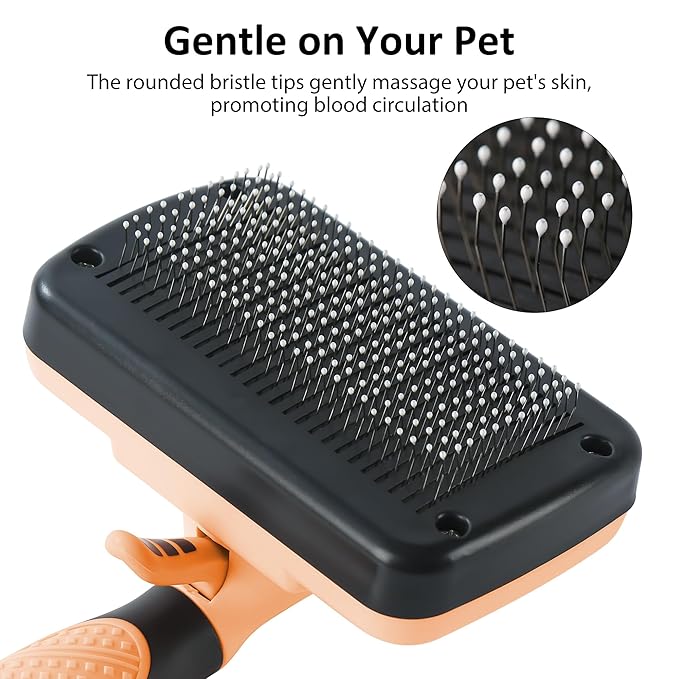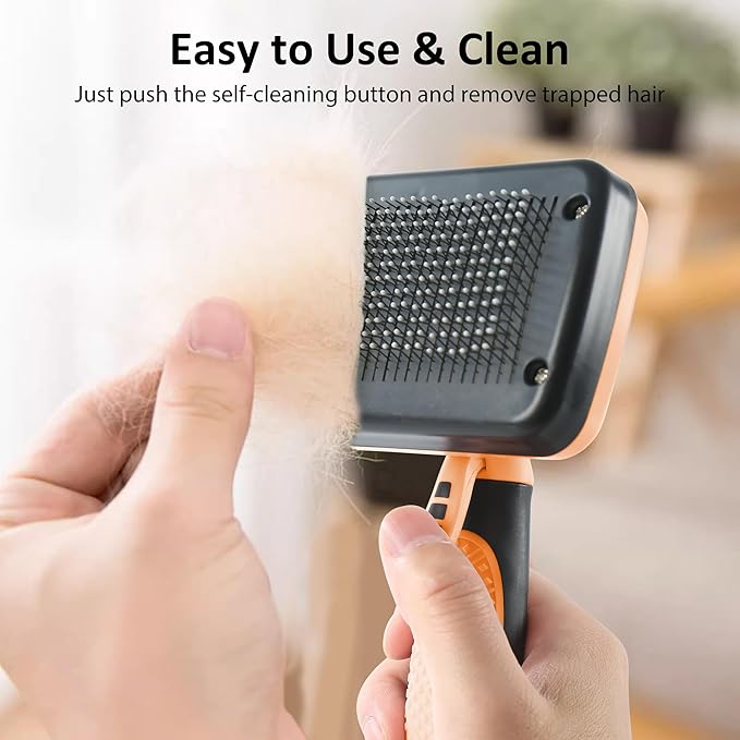 Dog & Cat Hair Brush,Self Cleaning Slicker Brush for Long Short Hair,Shedding & Grooming Pet Brush with Soft Bristle and Release Button,Orange