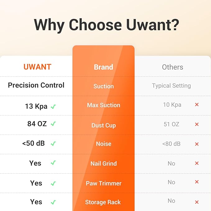 - 【Customer-Centric After-Sales Care】At Uwant, your satisfaction is our priority. Enjoy peace of mind with our 12-month warranty and lifetime technical support for our pet grooming vacuum. For any inquiries or assistance, simply reach out to us via message or email, and our dedicated team will provide prompt support to address your needs.