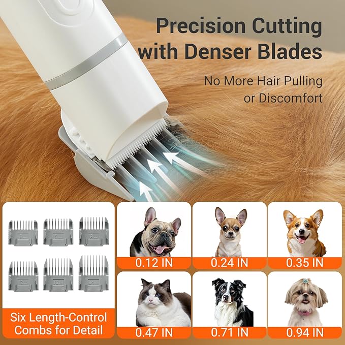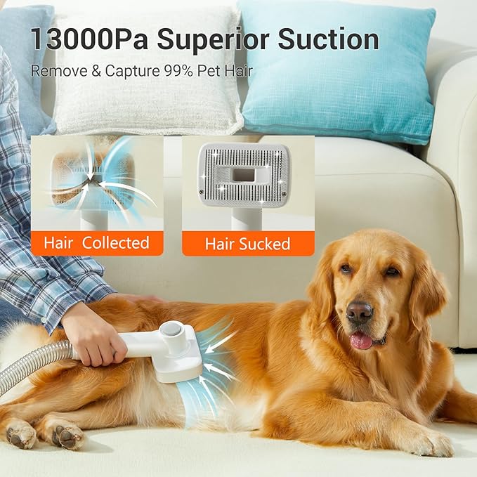 - 【Say Farewell to Pet Hair with Powerful Suction】Discover a new level of cleanliness with our pet grooming kit, boasting an impressive 13000 PA suction power to eliminate up to 99% of pet hair. Bid farewell to hairy furniture and embrace a tidier, hair-free living space.