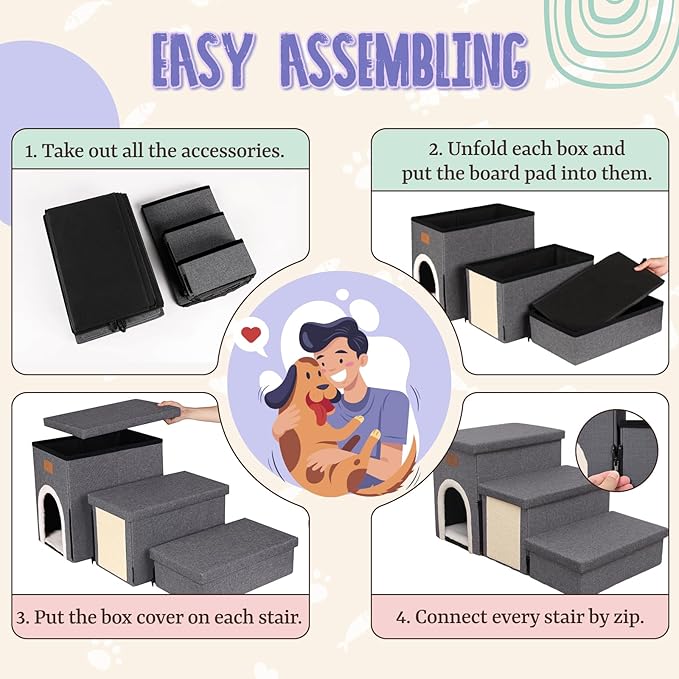 - EASY ASSEMBLY: The dog stairs for high beds are simple to assemble with detailed instructions provided. These pet stairs for small dogs can also be easily folded flat to store, making it a convenient addition to your home