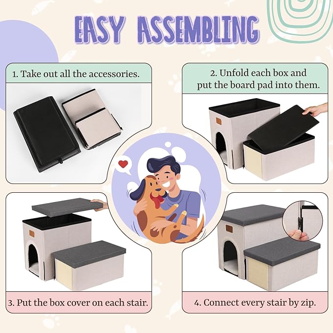 - EASY ASSEMBLY: The dog stairs for high beds are simple to assemble with detailed instructions provided. These pet stairs for small dogs can also be easily folded flat to store, making it a convenient addition to your home