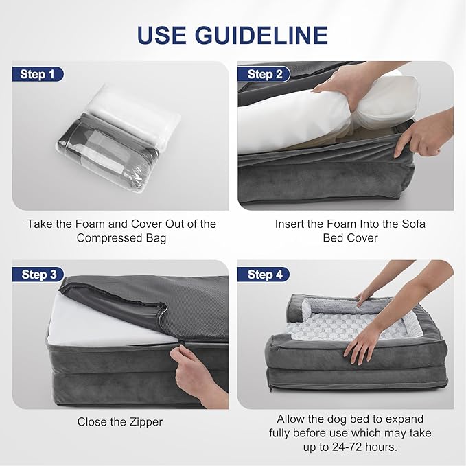 - Machine Wash and Care: Our washable dog bed with removable cover has a zipper closure and can be easily cleaned by machine. Please note that the inner foam is not washable. After receiving it, leave it for 24-72 hours to rebound the bed.